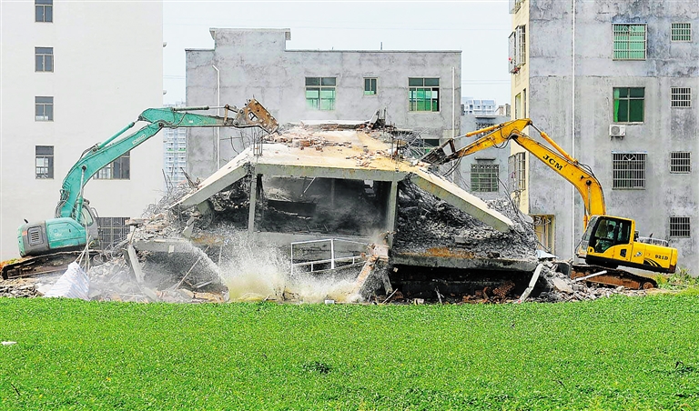 6月5日,琼山区委、区政府联合相关部门对凤翔街道办新大洲大道那梅村的6处违法建筑予以拆除,共拆除违法建筑面积达1125平方米。本报记者 张茂 特约记者 黄一笑 摄