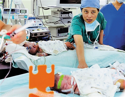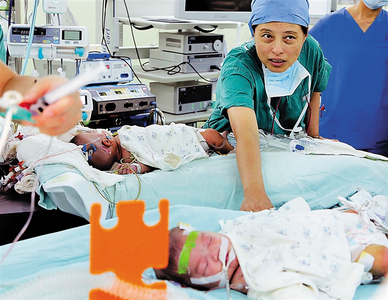 6月9日,经过5个多小时的手术,一对来自江西的臀部连体女婴在上海复旦大学附属儿科医院成功接受分离手术。据悉,此次分离手术采用3D打印技术进行精准辅助,这在我国儿童医院连体儿分离手术中尚属首次。 新华社发