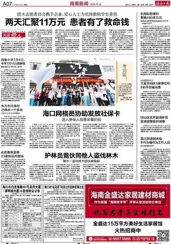 海南日报 海南新闻民生/社会 007 2015-06-101 2015年06月10日 星期三