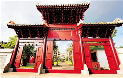 6月8日,在海口市海瑞墓,该墓核心区的大门已经建好,矗立在墓区的中轴线上。海瑞墓位于海口市丘海大道,明万历17年(公元1589年)修建,现占地面积15亩,扩建后面积为76.22亩,属于全国重点文物保护单位,省、市爱国主义教育、未成年人教育和廉政教育基地。海瑞墓文物景区扩建改造将与滨涯村片区旧城改造相结合,改扩建后的海瑞墓将打造成国家4A级景区。