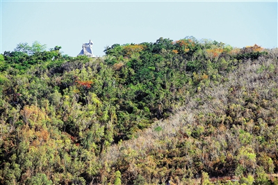 6月9日,在三亚鹿回头公园半山腰,部分山林出现叶子干枯现象。据气象信息显示,截至5月,三亚相对常年降雨偏少92%,部分山林因干旱,绿色山林在盛夏里出现了“秋色”景观。本报记者 张杰 特约记者 孙清 摄