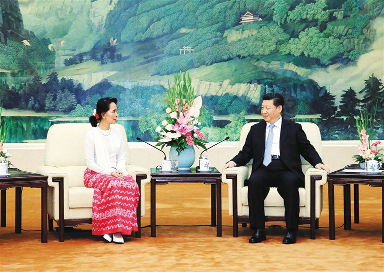 习近平指出,中缅是亲密友好的邻居。建交65年来,中缅传统友谊历经风雨从未改变,各领域务实合作成果丰富,成为休戚与共的利益共同体和命运共同体。这是两国历代领导人和两国人民共同努力的结果,要倍加珍惜。