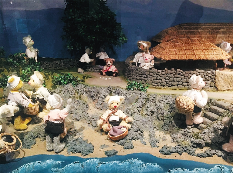 6月11日,我们来到位于西归浦市柱状节理带景点附近的泰迪熊博物馆,每人交纳7500韩元(合人民币约45元)的门票后,3层展厅观览下来让我们着实惊叹一番:博物馆规模庞大,展示着100年间生产的1300多种泰迪熊,从单纯的毛线玩具转变为具有收藏价值的艺术品,模仿参加二战、独立战争、登月计划、中国香港回归场景的小泰迪熊毛绒玩具个个传神,既能唱会跳,又舞龙耍宝,而大橱窗里仿明星版的泰迪熊们则星光熠熠,萌态十足,古董、历史、明星题材的泰迪熊应有尽有,一流的泰迪熊设计和精湛的制作技术,让人们尽享视觉盛宴。