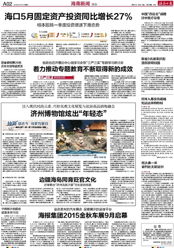 海南日报 海南新闻综合 002 2015-06-121 2015年06月12日 星期五