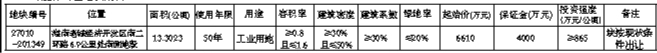 五、其他事项:(一)27010-201349号地块用于建筑节能反射隔热涂料项目建设。(二)竞买成交当天签订《成交确认书》,并在10个工作日内与我局签订《国有建设用地使用权出让合同》,竞买保证金自动转作受让地块的合同价款,合同签订后1个月内必须缴纳高于出让价款60%的首付款,余款按出让合同约定的时间付清。(三)受让人取得土地使用权后,应严格按照规划要求建设。涉及水务、绿化、环保、消防、交通管理等应符合国家和海南省的有关管理规定。(四)成交价款不含各种税费(耕地占用税及相关税费由竞得人按有关规定缴纳),挂牌佣金按有关规定收取。(五)本公告未尽事宜详见《澄迈县国有建设用地使用权挂牌出让手册》。