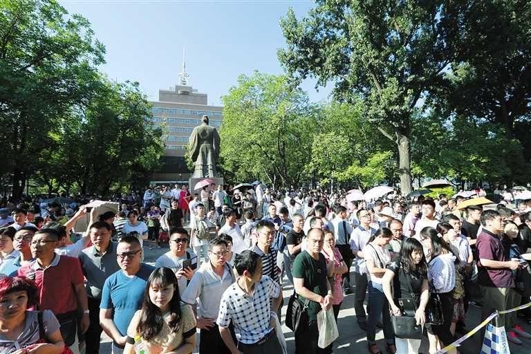 6月14日,家长在北京中国传媒大学考点外等候考生。 近日,全国高校自主招生考试陆续展开。根据教育部规定,今年全国高校自主招生考试首次在高考结束后进行,6月22日全面结束。全国共有102所院校各自组织自主招生测试。 新华社发(周海军 摄)