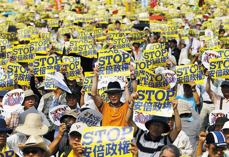 日本政府上月14日通过了与行使集体自卫权、强化日美军事一体化相关的一系列安保法案,随后提交国会审议。但随着审议展开,安保法案背离宪法理念、涉嫌违宪的问题不断浮现,法案本身的正当性遭到绝大多数宪法学者、律师、前政府法制局官员等法律专家的质疑和批判。