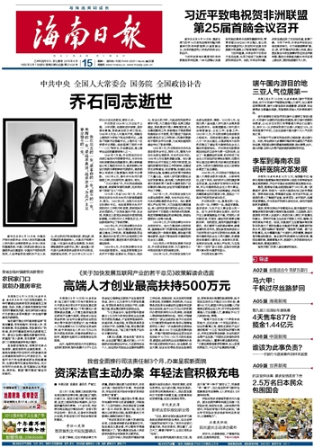 海南日报 头版 001 2015-06-151 2015年06月15日 星期一