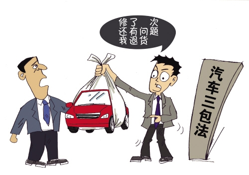 第二十一条规定:在家用汽车产品三包有效期内,因产品质量问题修理时间累计超过35日的,或者因同一产品质量问题累计修理超过5次的,消费者可以凭三包凭证、购车发票,由销售者负责更换。