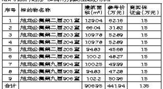 标的物情况说明:1、本次拍卖采取整体优先原则;2、该旭龙国际大厦附楼已经竣工,涉案9套房产未办理相应房产初始登记,故成交后相应的办证事项应以房地产管理部门要求为准;3、本次拍卖采取净价拍卖,即过户产生的税费均由买受人承担。标的展示时间及地点:自见报之日起至2015年6月30日17:00止,于标的物所在地进行展示。有意竞买者请于2015年6月30日17:00前到我司了解详情并办理竞买手续。竞买保证金须在2015年6月30日17:00前到帐,逾期将不再受理。交纳保证金单位名称:海口海事法院;开户行:中行海口市龙珠支行;账号:266262970641。缴款用途处须填明:(2015)琼海法技拍委字第4号竞买保证金(如代缴须注明代某某缴款)。