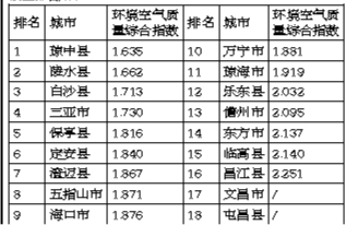 2015年5月全省18个市县(三沙市除外)城市(镇)环境空气质量排名如下: