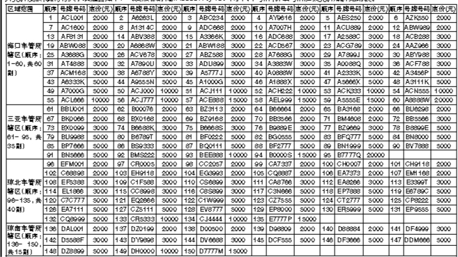 七、报名及竞价牌的发放:(一) 竞价者可采取预报名或现场报名方式。本公告之日起至牌号发放前,预报名者可携带上述有关报名资料到海南天悦拍卖有限公司预报名,符合条件及资料齐备的,缴交5000元竞价保证金(现金),海南天悦拍卖有限公司出具《预报名回执》和竞价保证金收据,预报名者凭《预报名回执》和竞价保证金收据及身份证明原件,于牌号发放日现场报名点换取竞价牌入场。现场报名者可于牌号发放日开竞价前,携带上述有关报名资料到现场报名点报名,符合条件的,缴交5000元竞价保证金(现金),开具竞价保证金收据,报名者凭竞价保证金收据、身份证明及相关报名资料领取竞价牌入场。(二)每位领取竞价牌的竞价者,只能携一人进入竞价现场参与叫价。