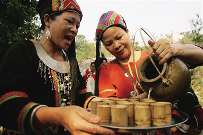 到海南旅游,一定要饮一次山兰酒。这种因由海南黎族山区旱糯稻(山兰稻)酿制而得名的酒,对黎族同胞来说,就像国外的香槟一样,一般都是逢贵客来临或重大节庆时才会拿出来痛饮的。