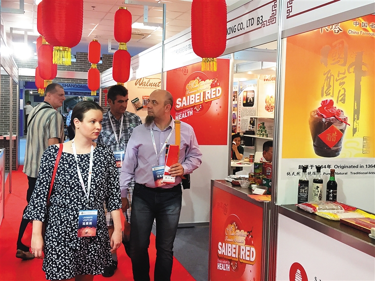 6月16日,在匈牙利首都布达佩斯,人们在2015年中国品牌商品中东欧展上参观。 当日,为期3天的2015年中国品牌商品中东欧展在匈牙利首都布达佩斯的中国商品交易展示中心开幕。在为期3天的展会期间,中东欧客户将与来自山东、山西、广西、河北、上海、宁波等省市的130余家参展企业进行洽谈。中国参展企业的展品涵盖机电、机械设备、建材、健身器材、轻工纺织、日用品和食品等领域。 新华社记者 杨永前 摄