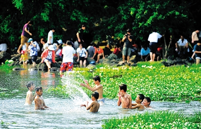 “正月善、五月毒”,每逢端午“洗龙水”是重要的节日习俗,寓意着一年大吉大利、龙起腾飞。定安县龙门镇久温塘村火山冷泉,是迄今为止发现的中国最大的热带富硒冷泉。日自涌量达4万立方米,常年水温23~25℃,符合饮用天然矿泉水最佳标准。每年端午,远近的游客都慕名前来“洗龙水”。走近冷泉,古榕连片,怪石嶙峋,近百股清泉源头从石缝里汩汩流淌,汇集成塘。小鱼如织,彩蝶飞舞,戏水、泡澡、泡脚、享受极为舒服有趣的鱼疗,是清暑纳爽、休闲养生的好去处。