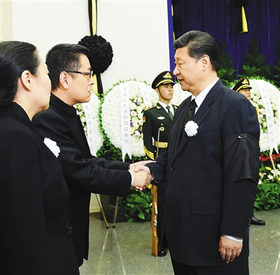 上午9时许,习近平、李克强、张德江、俞正声、刘云山、王岐山、胡锦涛等,在哀乐声中缓步来到乔石同志的遗体前肃立默哀,向乔石同志的遗体三鞠躬,并与乔石同志亲属一一握手,表示慰问。江泽民在外地送了花圈,对乔石同志逝世表示哀悼。