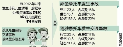 记者近日从省交警总队获悉,自2012年以来发生涉及儿童适用一般程序处理交通事故378起、142名儿童死亡、914名受伤,涉及儿童道路交通事故总体呈多发态势。其中,乘坐摩托车发生事故死亡23人、占总数16%,重伤15人、占总数16%,轻伤182人、占总数22%;驾驶摩托车发生交通事故死亡25人、占总数17%,重伤19人、占总数20%,轻伤117人、占总数14%。