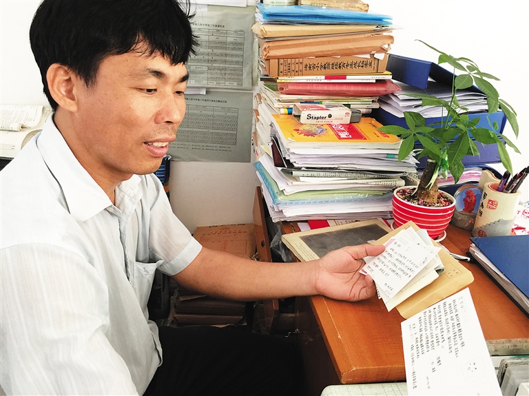 一头看上去来不及梳理的头发,疏松的衬衣长裤——钱堆在上衣口袋里,长裤下是凉鞋,“海南特色”的普通话,除非讲到兴奋的话题,否则似乎不善言辞。45岁的八所中学教师林海,给人一副朴拙的海南“伯爹”(大叔)形象。