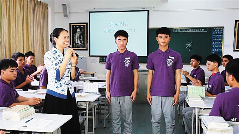 学习了国学、学习了《弟子规》,会给中职技工类学生带来什么确定的变化?陈雯掌握的经典案例不胜枚举:一个进入学校时数学考试得零分的学生,三年之后如今已经拿到了自考大专毕业证书 ;一个学生戒掉了他多年的网瘾;一个学生刚入校的时候顶撞老师,如今加入学校的单招班,一心一意地准备考入本科院校……