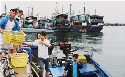 6月22日上午,台风来临之前,最后一船鱼货也搬上了岸。陵水1934艘渔船已经全部入港停泊,其中18艘渔船停泊在外省港口。新村港停泊的渔船中有105艘属于外市县管辖。