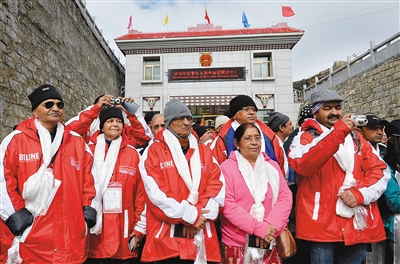 当日上午,中印边境乃堆拉山口迎来首批印度官方香客,标志着印度香客进藏朝圣新线路正式开通。这批香客将前往西藏阿里地区冈仁波齐峰和玛旁雍错湖,开展为期12天的朝圣之旅。