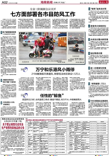 海南日报 海南新闻防御台风“鲸鱼” 002 2015-06-231 2015年06月23日 星期二