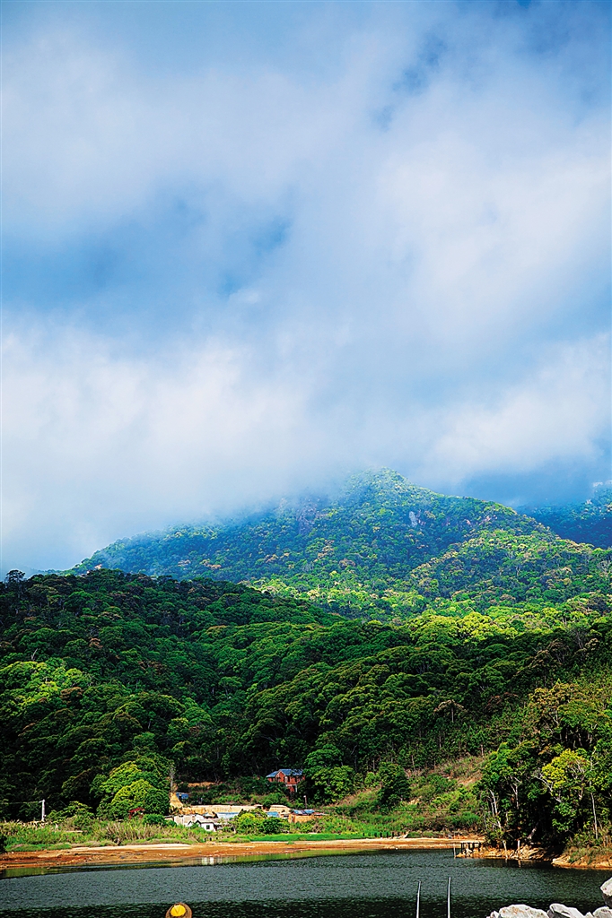还有什么比得上一座有水的山峰更令人神往吗?水,是令尖峰岭更加迷人的最重要的一环。无论是顺着山体倾泻而下的小瀑布,还是山涧中潺潺流动的溪水,都让这座大山更为灵动。而那位于海拔800米高山盆地中的尖峰岭天池,则更是令人赞叹。四周是18座绿林莽莽的千米奇峰,600亩的天池就如此被环抱着。大自然将绿树、蓝天、白云的影子全部投入那平静的湖面,尝试要将这美景在水中再复制一番。临池而建的酒店,在靠近酒店房间的水面种下莲花,为这池水增添了妩媚。