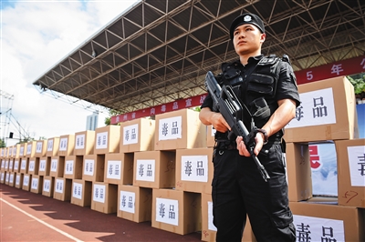 6月23日,在贵州省贵阳市毒品集中销毁现场,特警重兵守卫待销毁的毒品。 “6·26”国际禁毒日即将到来之际,贵州省当日在贵阳市公开销毁各类毒品1200公斤。 新华社记者 欧东衢摄