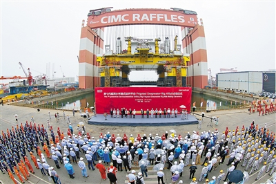 6月25日,第七代超深水半潜式深水平台“Frigstad Deepwater Rig Alfa”在山东烟台中集来福士建造基地合拢。 当日,经过22个月的建造,一座最大作业水深3658米的超深水半潜式钻井平台在位于山东烟台的中集来福士建造基地合拢。这一平台是烟台中集来福士海洋工程有限公司为挪威一家公司建造的。据来福士公司介绍,这一海上钻井平台最大作业水深首次突破3600米,是当前全球最大作业水深。