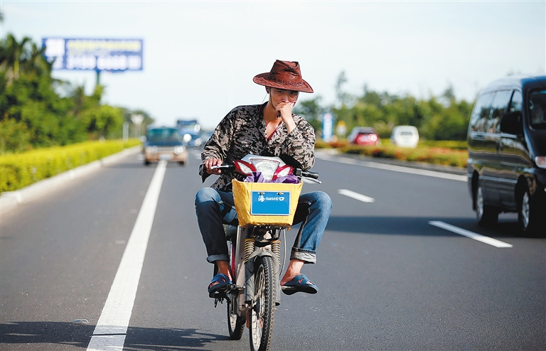 白驹大道是海口市城区连接海文高速路的重要交通主干道。今天下午5时许,白驹大道车来车往、车流量大,但是丝毫不影响一些电动车“毫无拘束”地行驶。在东边村附近路段,一辆电动车超载三人,其中还有儿童,摇摇晃晃行驶在道路上,时而走非机动车道,时而闯入机动车道;在海南省环境科学研究院附近,一名男子一边打电话还翘着二郎腿驾驶电动车;更有甚者,有三辆电动车并列走在路上,其中一辆已经占用了机动车道,三人有说有笑,如入无人之境。