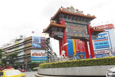 这是泰国曼谷的唐人街,泰籍华人导游张杰指着两边林立的店铺说,唐人街全长约2公里,店铺老板基本上是华人华侨,百余家金灿灿的金店是唐人街最大的亮点。
