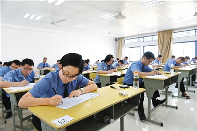 随着一声清脆的铃声,考试结束,今年33岁的海口市秀英区检察院干部赵世良带着轻松自信的笑容走出考场。