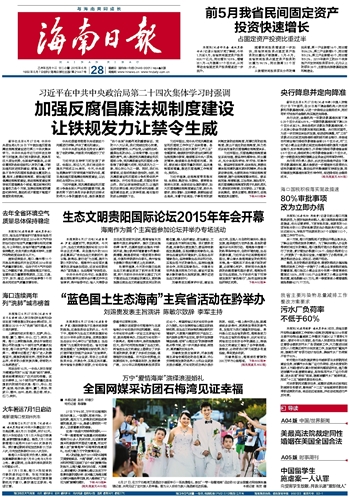 海南日报 头版 001 2015-06-281 2015年06月28日 星期日