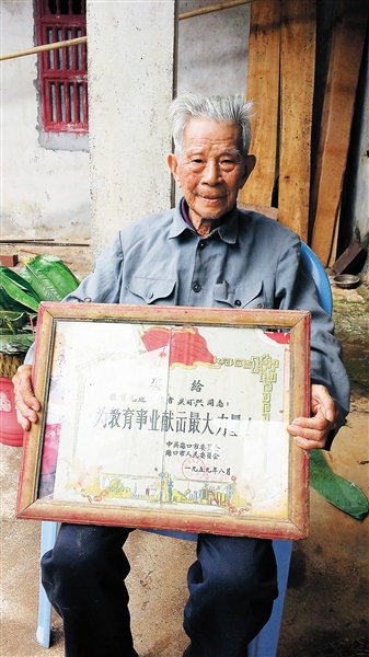 对于自己忠守了一辈子的职业,吴老内心充满了敬畏。在吴老的家中,摆放着他从教以来的所有奖状,从上世纪50年代到现在,每一张奖状,他都悉心收藏装裱起来。即使退休后,他平时也总穿着当老师时的那一身洗得泛白的灰色中山装,左上方的口袋里别一支钢笔。