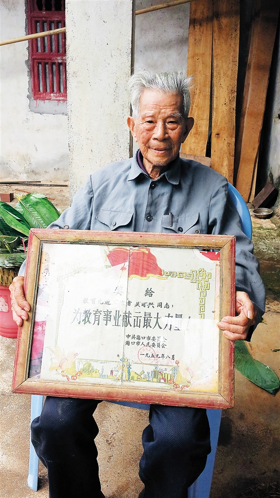 吴老退休后担任红旗镇的离退休党支部书记,一直到96岁。这些年来,他每天必做的事,就是徒步往返于家与2公里外的茶馆之间,喝茶看报,在他的家中放着一摞一摞的《海南日报》和《参考消息》。他说:“不断的学习,是让自己保持年轻的秘诀!”