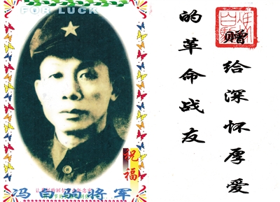 跟记者见面当天,他特意将这张照片用透明塑料袋里三层外三层地包裹起来,然后小心翼翼地揣在身上。这张照片的正面是冯白驹将军年轻时候的军装半身照,背面印着冯白驹将军的红色刻章,并竖排写着“赠给深怀厚爱的革命战友”。