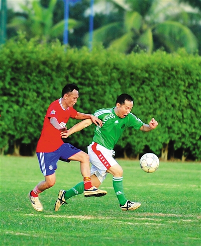 在海口业余足球圈说起“阿赖”陈锦文,很少有人不知道。今年44岁的他还没有挂靴,每周坚持踢一次11人制足球赛。和20多年前球场上那个“快马”、“追风少年”相比,现在的阿赖动作和速度都慢了好几拍。不过,这并不妨碍他对足球的喜爱。