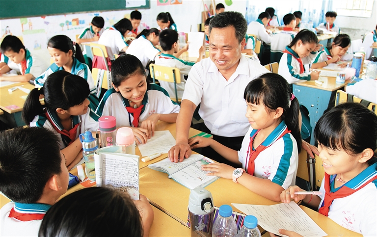 六年级语文老师刘庆龄,先后在哈尔滨、云南教书,2011年来到儋州思源。她说:“刚来思源,我感觉自己从天堂掉到了地狱,到外面都不好意思说自己是思源的老师,3年后,我又从地狱爬上来了。现在说起我在思源教书,大家都很羡慕。”