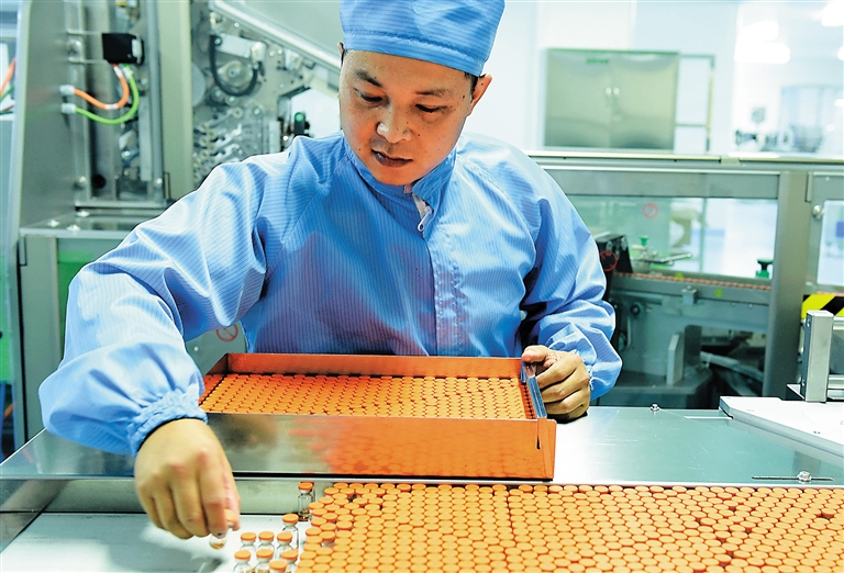 6月30日,由中国医学科学院医学生物学研究所自主研发的世界首个塞宾株脊髓灰质炎灭活疫苗(单苗)正式投入市场。通过与进口注射用脊髓灰质炎灭活疫苗的平行试验对照,该疫苗被证明具有良好免疫效果,生产成本更加低廉,尤其适合在发展中国家生产和使用。 新华社记者 蔺以光 摄