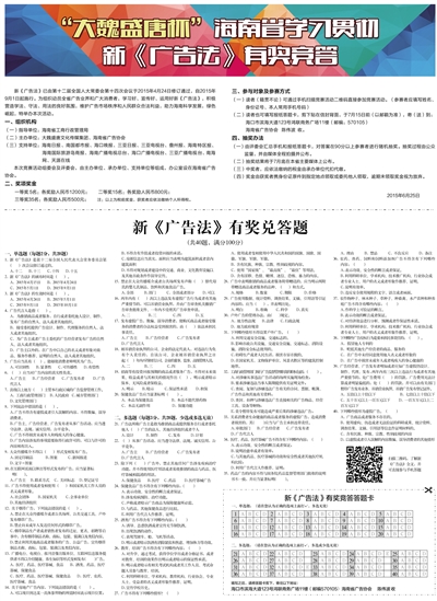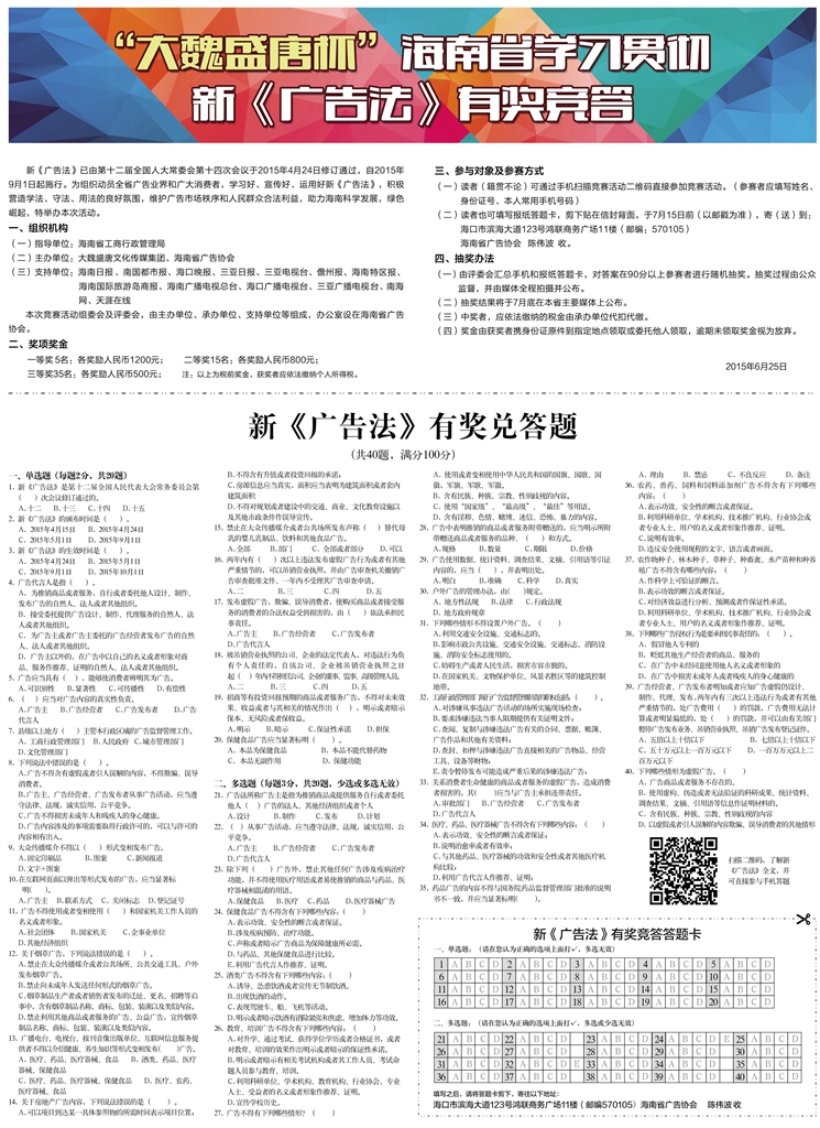 “大魏盛唐杯”海南省学习贯彻 新《广告法》有奖竞答