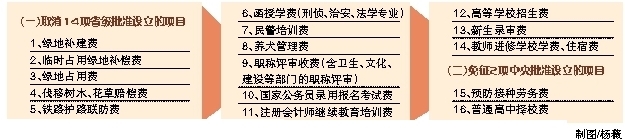 在取消和免征的收费项目中,一些是具有公益性质,由公共财政予以保障,比如高等学校招生费和新生录审费、教师进修学校学费和住宿费等;一些是不符合改革的要求和经济社会发展的趋势,按照相关改革的推进及时予以修改,比如我省从今年起明确要求省内不再招收普通高中择校生,此次免征了普通高中择校费;一些是从鼓励市场和社会活力出发,比如取消职称评审收费、国家公务员录用报名考试费,有利于鼓励广大工作人员主动学习,提高专业技能,减轻困难家庭负担;还有一些是出于推动政府职能转变、加强社会管理的考虑,比如取消绿地占用费、伐移树木花草赔偿费等,取消收费后,有利于主管部门依据相关法规加强监管,加大对破坏、占用绿地等违法行为的处罚力度,强化了城市管理功能,避免了通过缴费使占用破坏公共绿地的行为合法化。