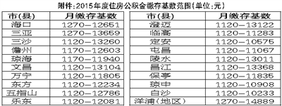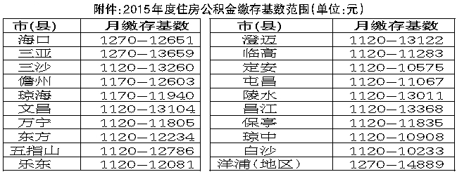 海南省住房公积金管理局关于2015年度住房公积金缴存基数范围的公告