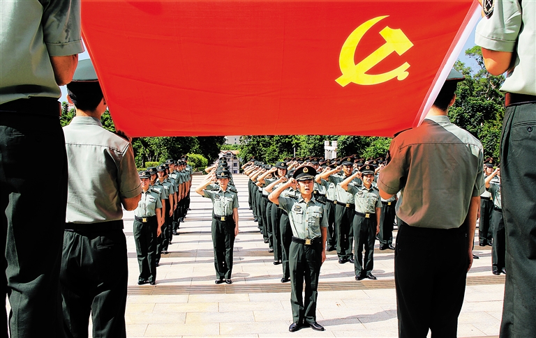 “七一”前夕,在解放海南岛战役烈士陵园,广州军区某通信团全体党员隆重集会,举行“”暨庆祝建党94周年活动,引导全体党员牢记党员身份,珍惜党员荣誉,履行党员职责,强化模范带头意识,牢记强军使命和担当,以实际行动践行庄严诺言,争当新“四有”军人。
