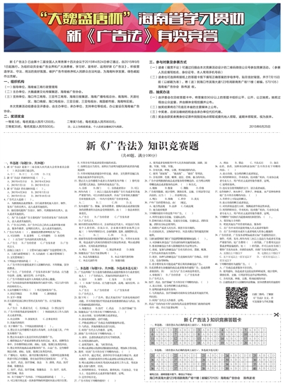 “大魏盛唐杯”海南省学习贯彻 新《广告法》有奖竞答