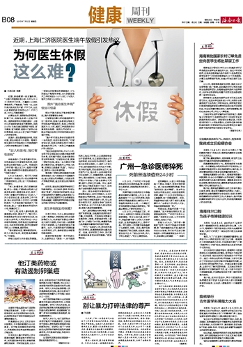 在国外,医生都被强迫休假,而在中国,医生休假却十分困难。海南日报记者近日对我省部分三甲医院医护人员的休假情况进行了调查。
