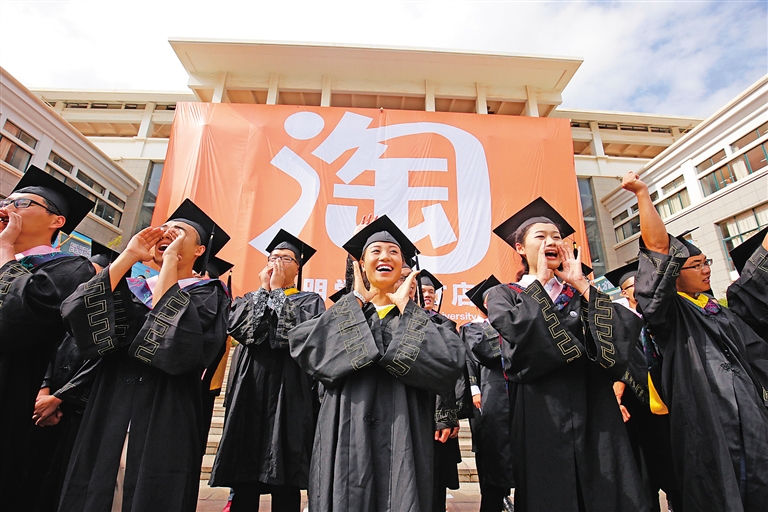 7月2日,首批入驻人才店的昆明学院毕业生在庆祝毕业。 当日,昆明学院院长何华在毕业典礼上向4500名师生宣布淘宝“昆明学院人才店”正式成立,首批65位优秀毕业生将通过该人才店求职。这是高校搭建毕业生网络求职渠道的一个新尝试。