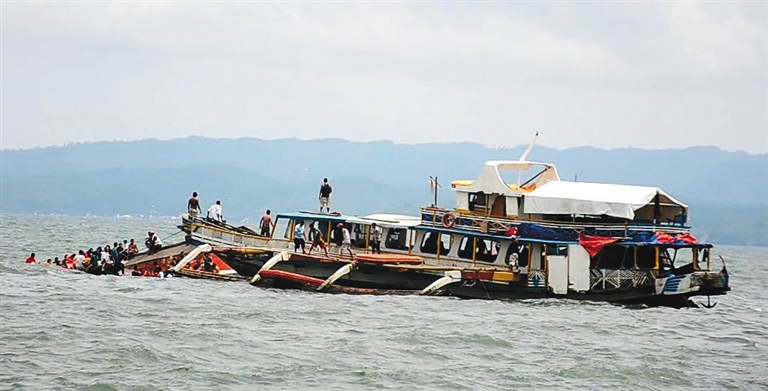 7月2日,在菲律宾中部莱特岛的奥尔莫克市,救援人员在渡船倾覆事故现场救助幸存者。 当天中午在莱特岛奥尔莫克市,一艘载有189人的渡船刚刚离岸就因遭遇恶劣海况而倾覆。菲律宾海岸警卫队说,事故的遇难者人数已上升至36人,另有26人失踪,127人获救。