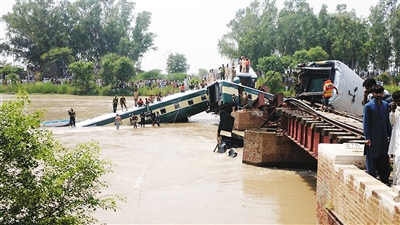 巴基斯坦一列火车坠河