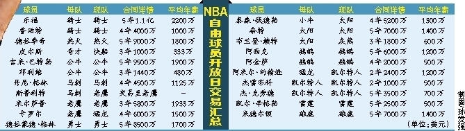 公牛5年9500万成功留住最快进步球员巴特勒,外加射手邓利维新鲜出炉的3年1440万合同,公牛支出1亿多美金也算“大放血”了。留守的人,还有迈阿密海滩的德拉季奇,5年9000万。亚特兰大的米尔萨普,3年5800万。此外,还有早前曝出与勇士谈崩的格林,如今又5年8500万留队,以及太阳的奈特等大大小小的球队与球员,都为首日这球员与球队之间满天飞的10亿美元添下浓墨重彩的一笔。