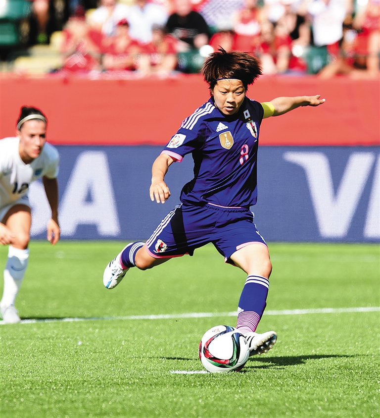 北京时间7月2日,在女足世界杯半决赛中,日本队以2:1击败英格兰队,晋级决赛。图为日本队球员宫间绫在比赛中主罚点球命中。